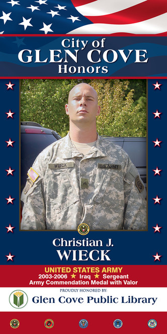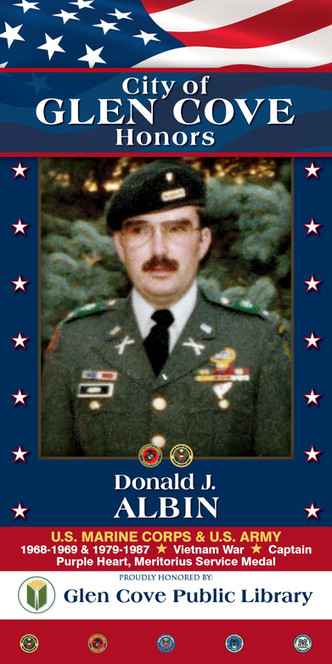 The Glen Cove Salutes project honors active duty and veterans of the United States Armed Forces. Custom banners including photo, branch, and service years are displayed side by side on antique lampposts in beautiful Morgan Park from Memorial Day to Labor Day. In this online exhibit, you will find reflections of the honored veterans submitted by their family and friends.