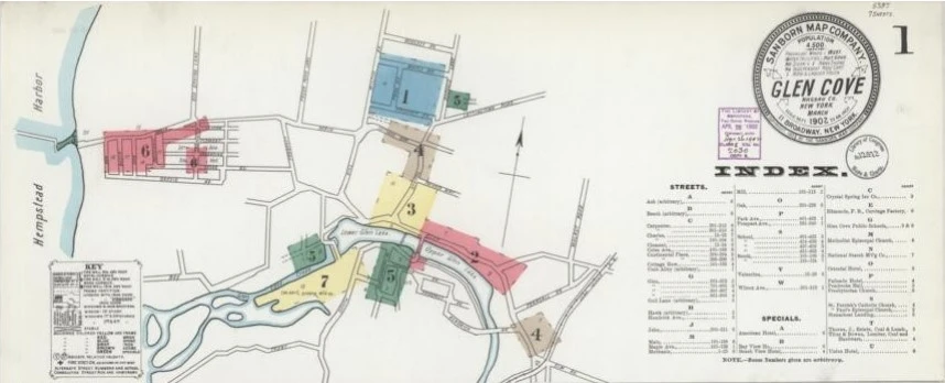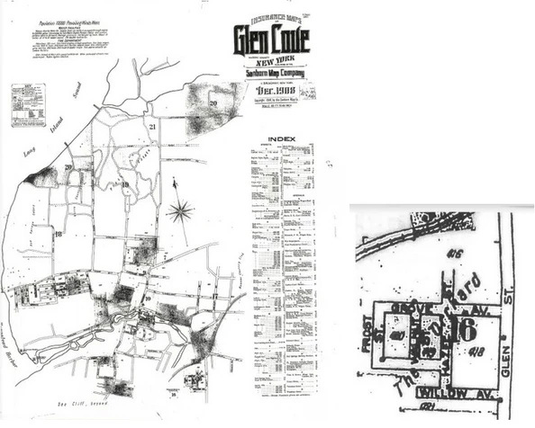 The earliest fire insurance maps for Glen Cove dated 1893 and 1902 do not show buildings in the area later known as The Orchard. In both these two maps, we see tracks leading to the Glen Street Station. The railroad was operated by the Glen Cove Branch RailRoad and opened on May 16,1867. For two years, it was the end of the line until expansion to Locust Valley started in 1869. For many years Glen Cove only had one station, the Glen Street Station.